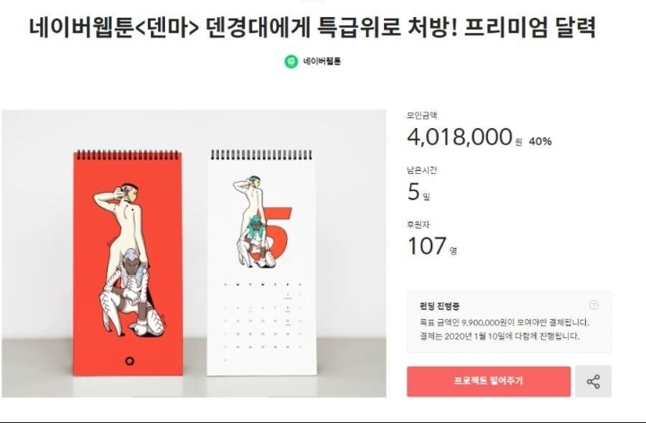 덴마 달력 펀딩 : 40% , 후원자 107명 , 4,018,000원 모금