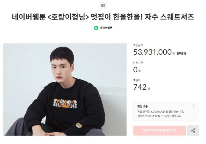 충성팬덤 큰 웹툰이 펀딩 열면 어느정도 모이나 보여주기 위한 예시로 들고왔음
