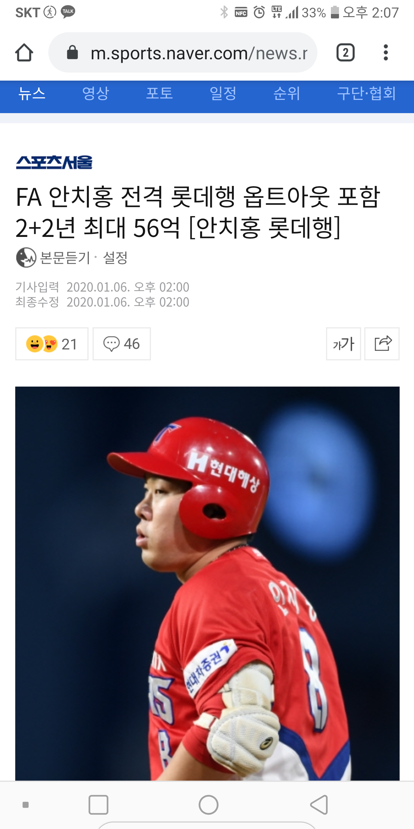 옵션 존나 많던데. 계약 자체는 드르렁 할 수 없는 좋은 계약이긴 한데 안치홍이 작년 5홈런이라 꼴대팬은 심드렁 한듯