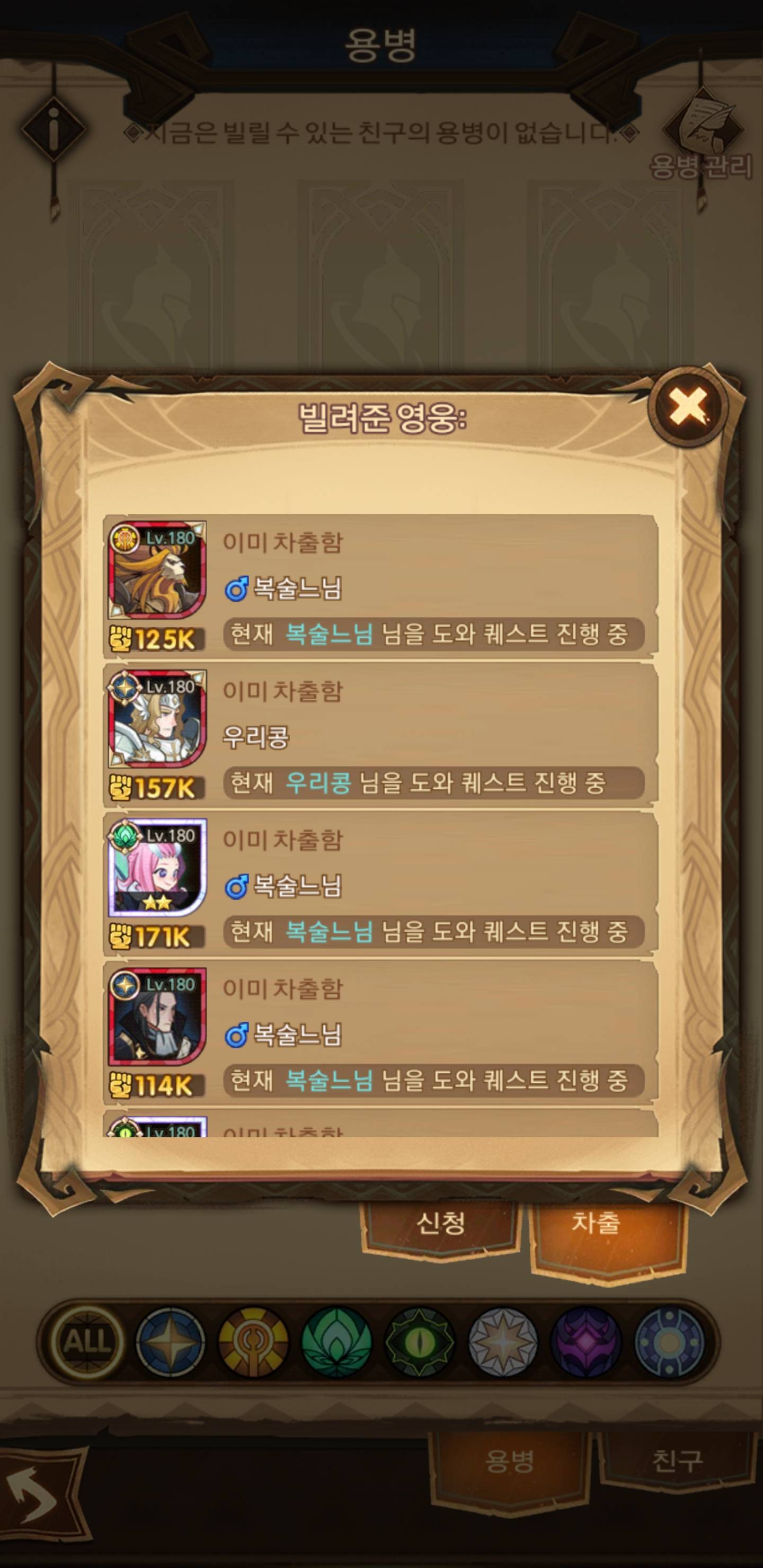 친구하면 일주일에 한번 내꺼 캐릭 한번 쓸수 있다
