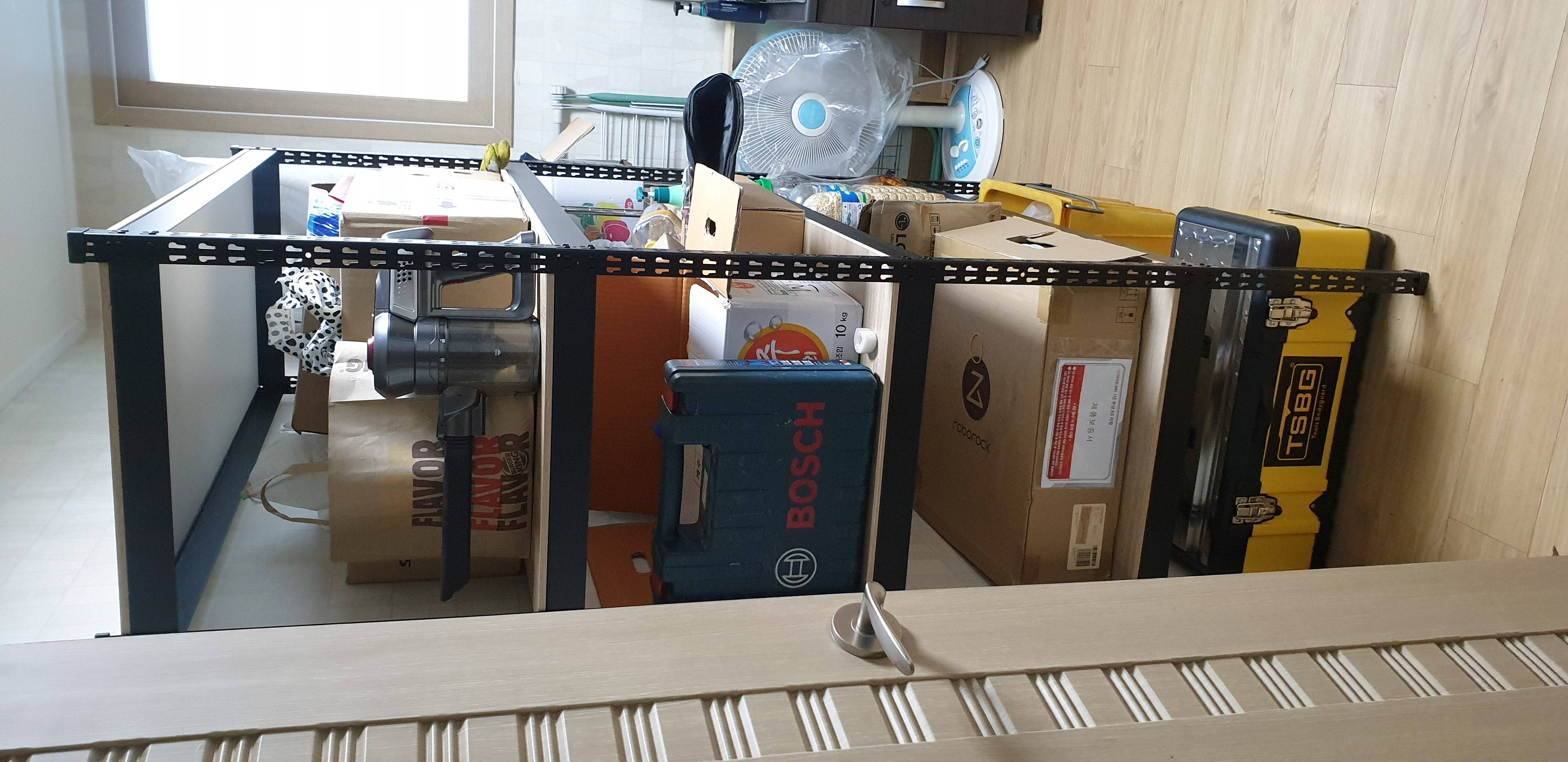 빨래 2번 갈비찜 청소 설거지 선반 만들어서 창고방물건 일단 쑤셔박으니깐 다섯시여?