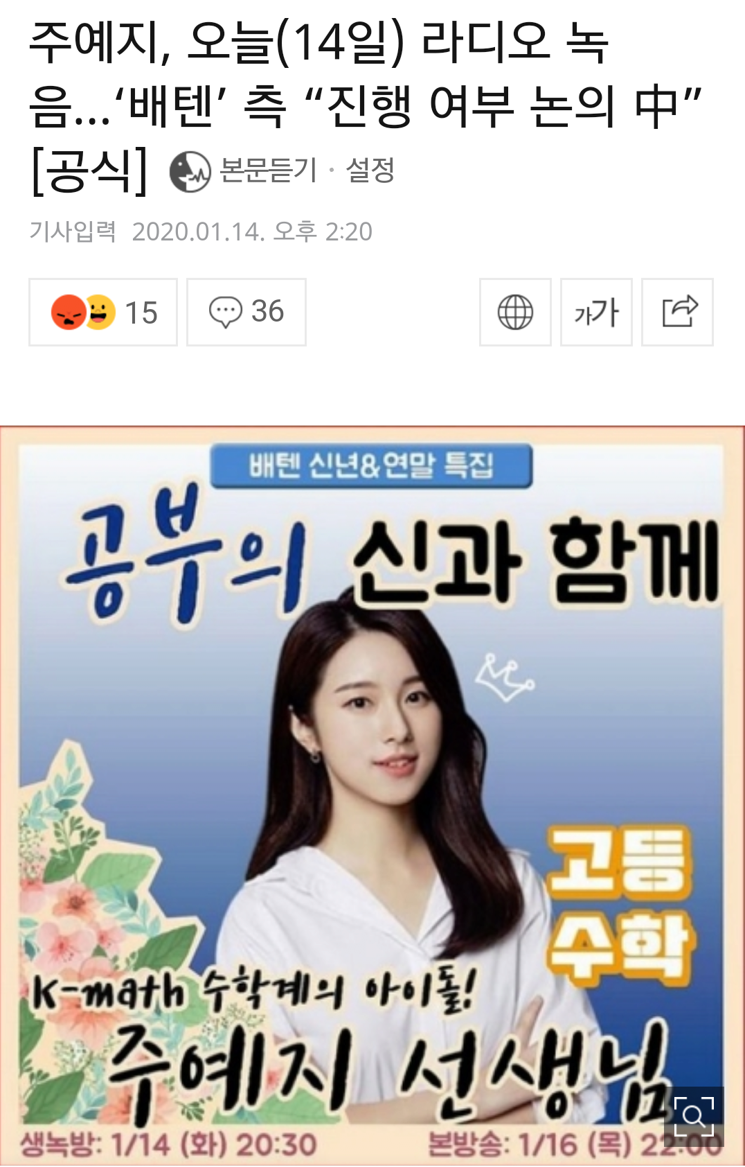[일반] 오늘의 화제 인물 배텐 출연 예정이었구먼