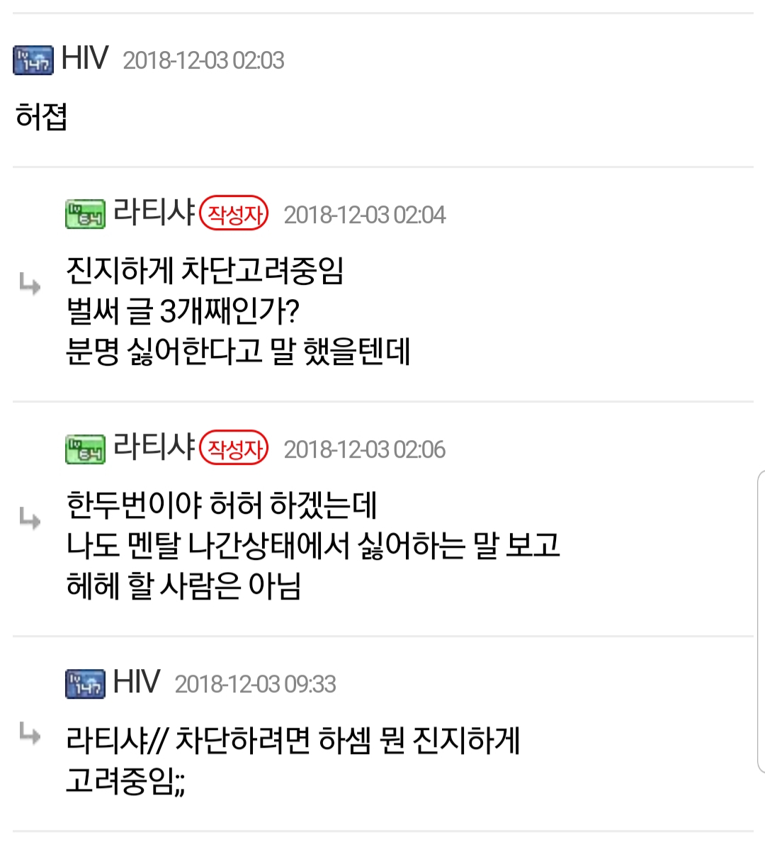 어쩌라고 식의 댓글이 달려서 걍 차단 박아서