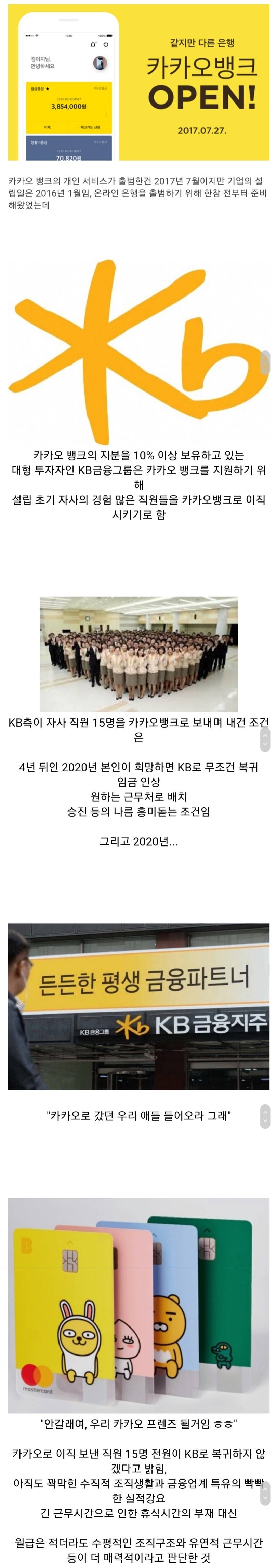 카카오 뱅크는 IT 기업에 가깝고 은행하고 IT 기업의 기업 문화 들어보면 차이가 현격한데 게다가 카카오 문화의 상당 지분을 차지하는게 다음인데 이 다음 문화 같은 IT 내에서도 가장 경쟁이 적고 자유로운 구조로 유명했던 곳이니 차이가 더 벌어질걸