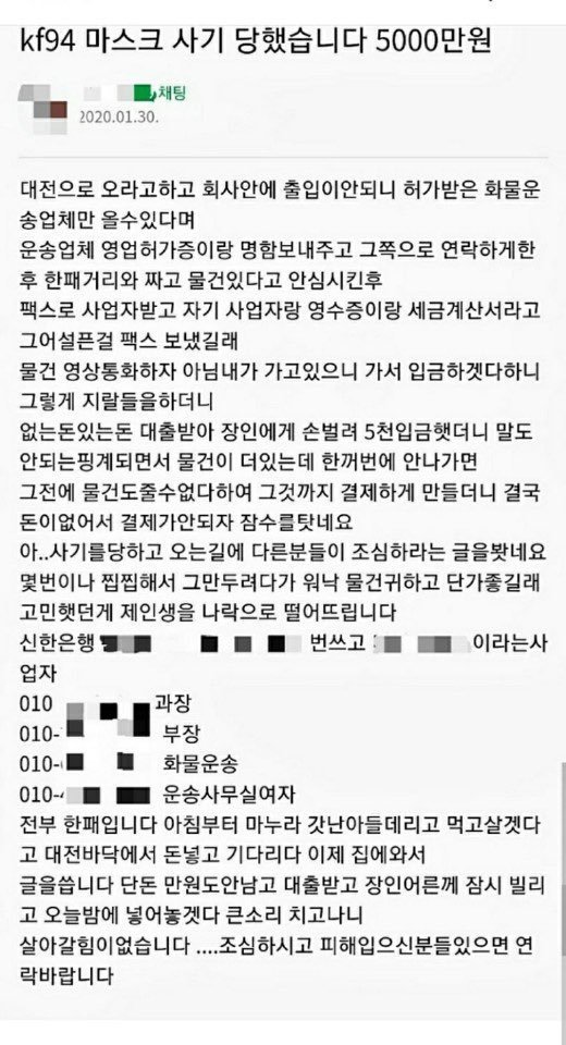 마스크 뜬다길래 한탕 크게 해먹으려다 망한건데 오히려 그런걸 노리는 사기꾼들도 있구나