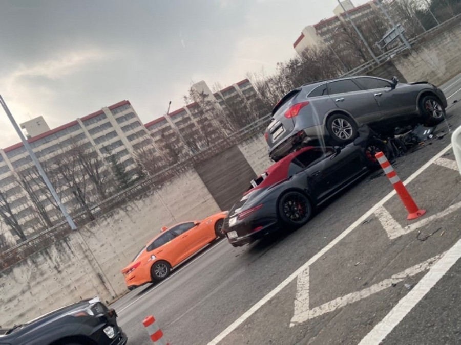어떻게 이렇게 되지 포르쉐 차체가 낮아서 뒤에서 치면 아래로 파고들어가는건가