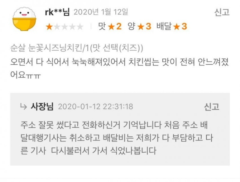 뚱땡만두// 아니 나는 저 사장님 글에서 충분히 그거까지 유추가 가능하다고 생각했거든. 근데 그걸 유추할 정도 지능이 있는 놈이면 애초에 저런 리뷰를 안 썼겠지 내가 잘못 생각했다
