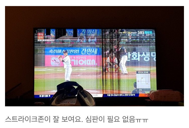 아빠 야구 재밌게 보라고 모니터에 스트라이크 존 만들어줌