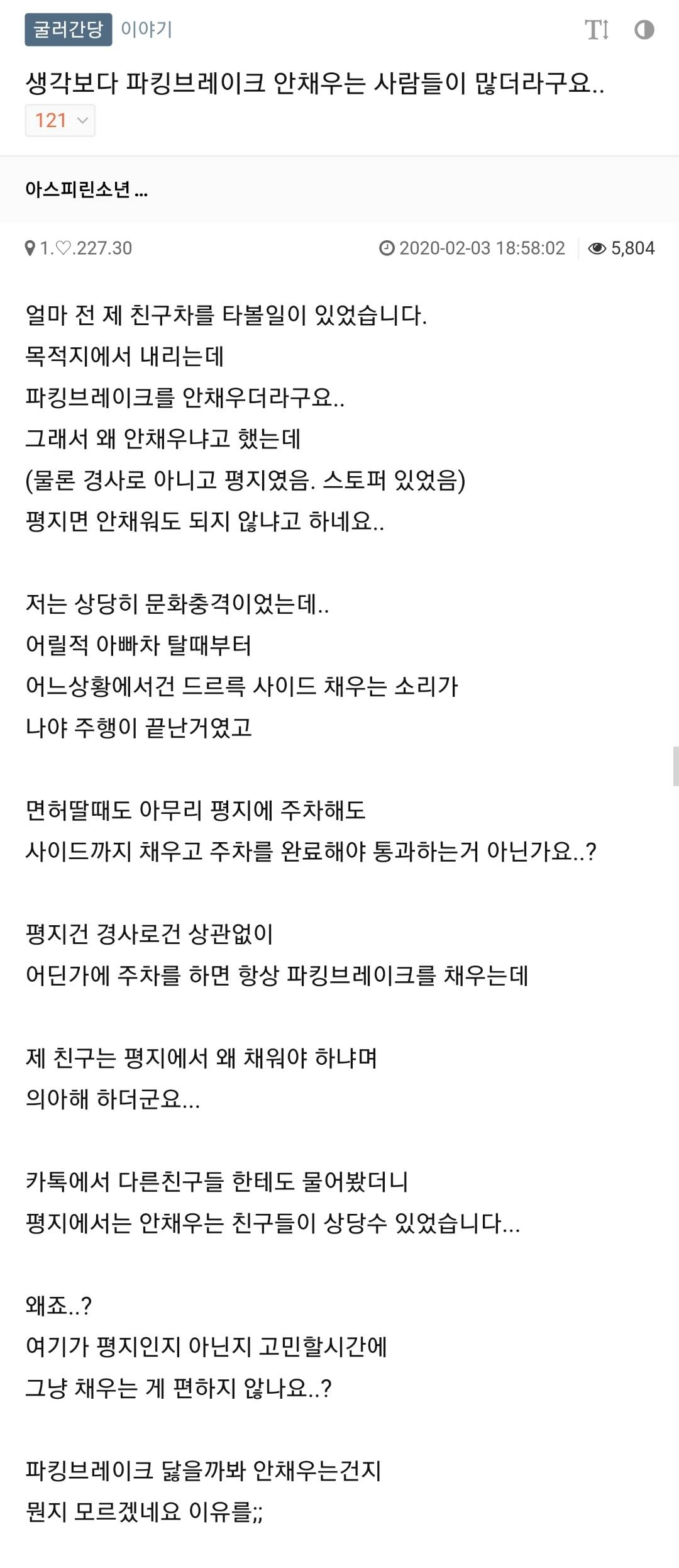 나도 글쓴이랑 같은 생각인데 그걸 왜 안채워? 기어 파킹 브레이크 존나약함