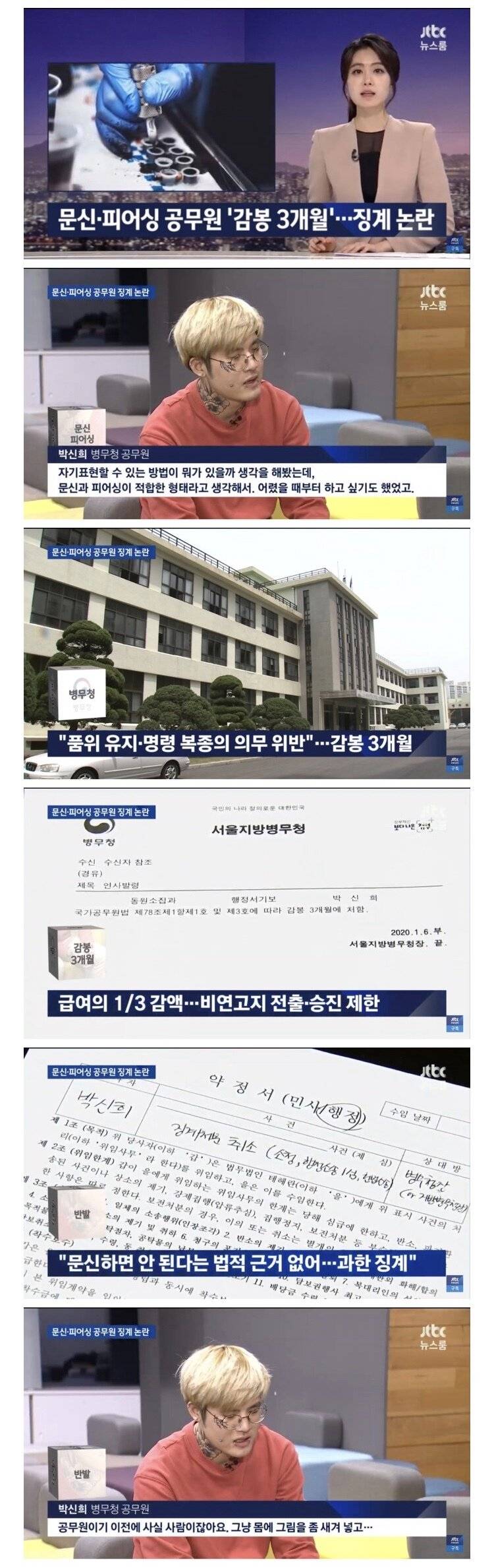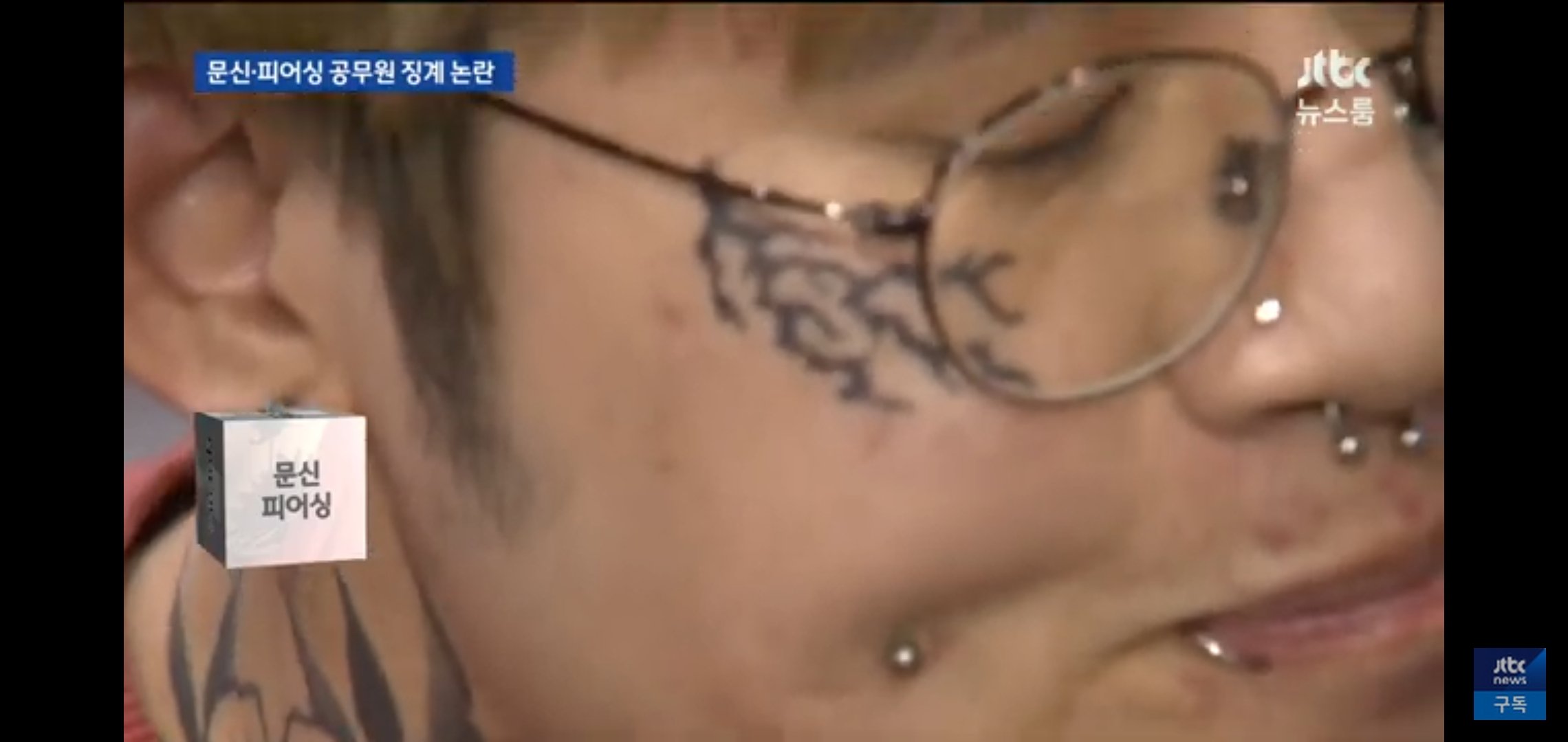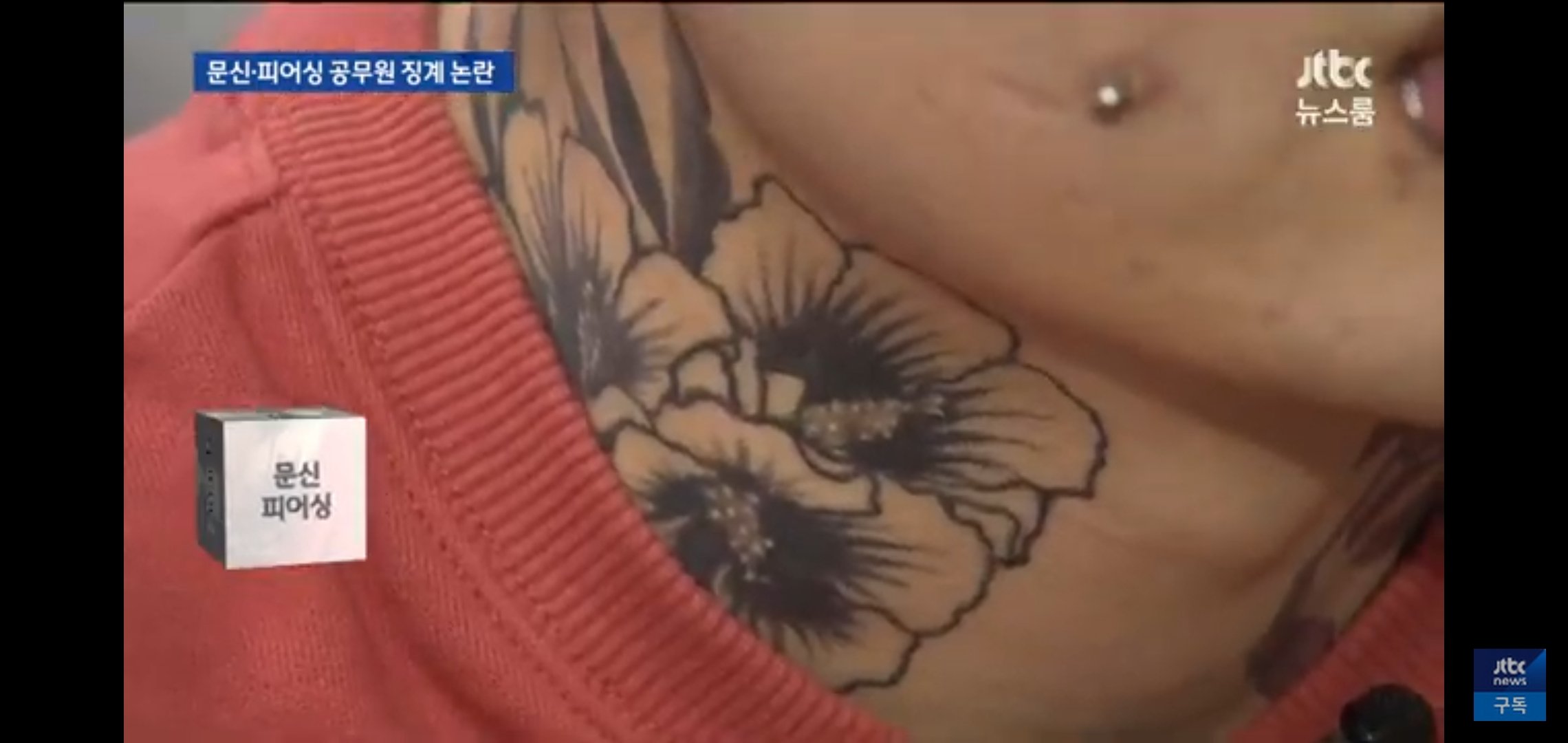 문신하면 안된다는 사유가 없으니 동료나 시민으로부터 신고 접수를 받고 그걸로 주의 주고 그래도 안고칠 때 품위 관련 뭐뭐로 징계 때리면 좋았을뻔 했군