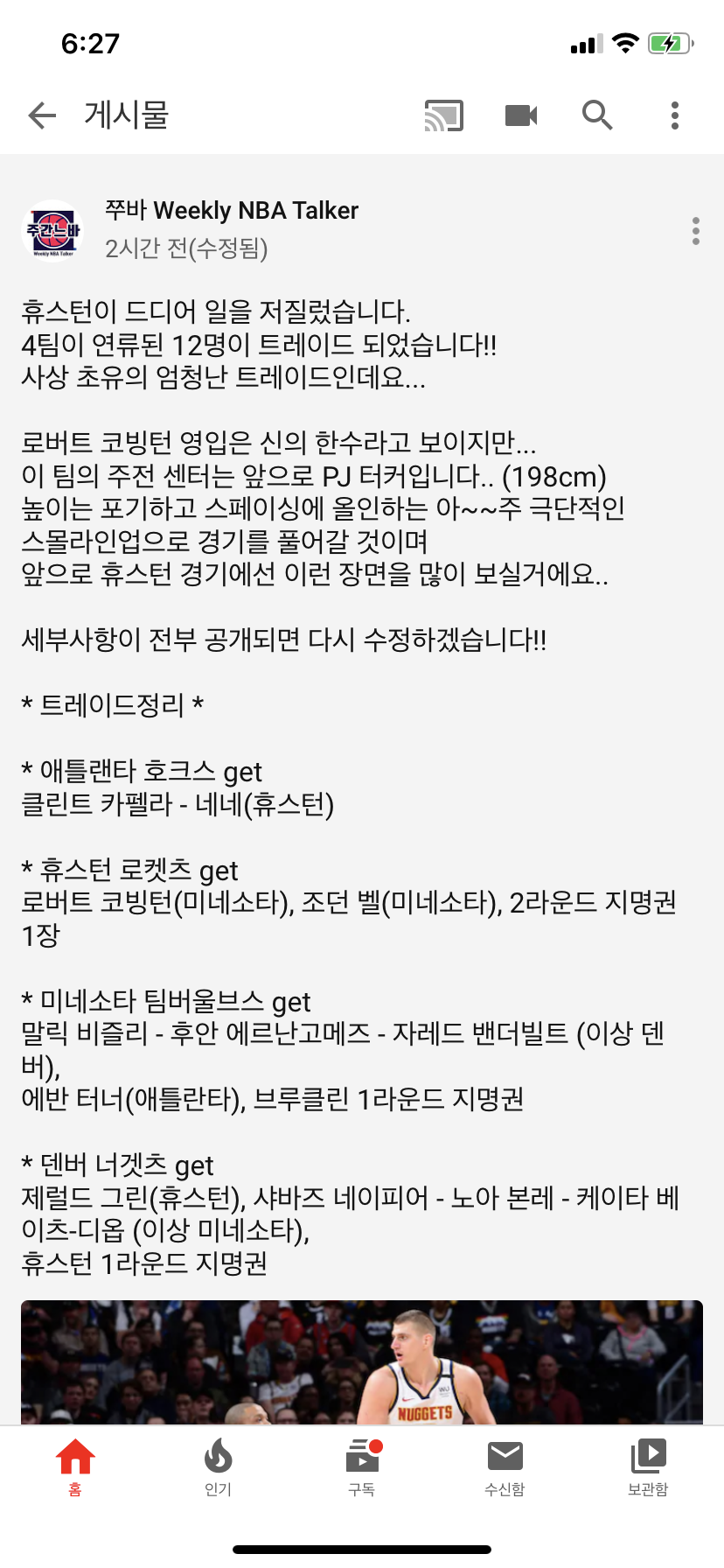 터커 센터행 ㅋㅋ 휴스턴은 우승 못할듯. 너무 극단적인 팀임. 골스 하위호환.