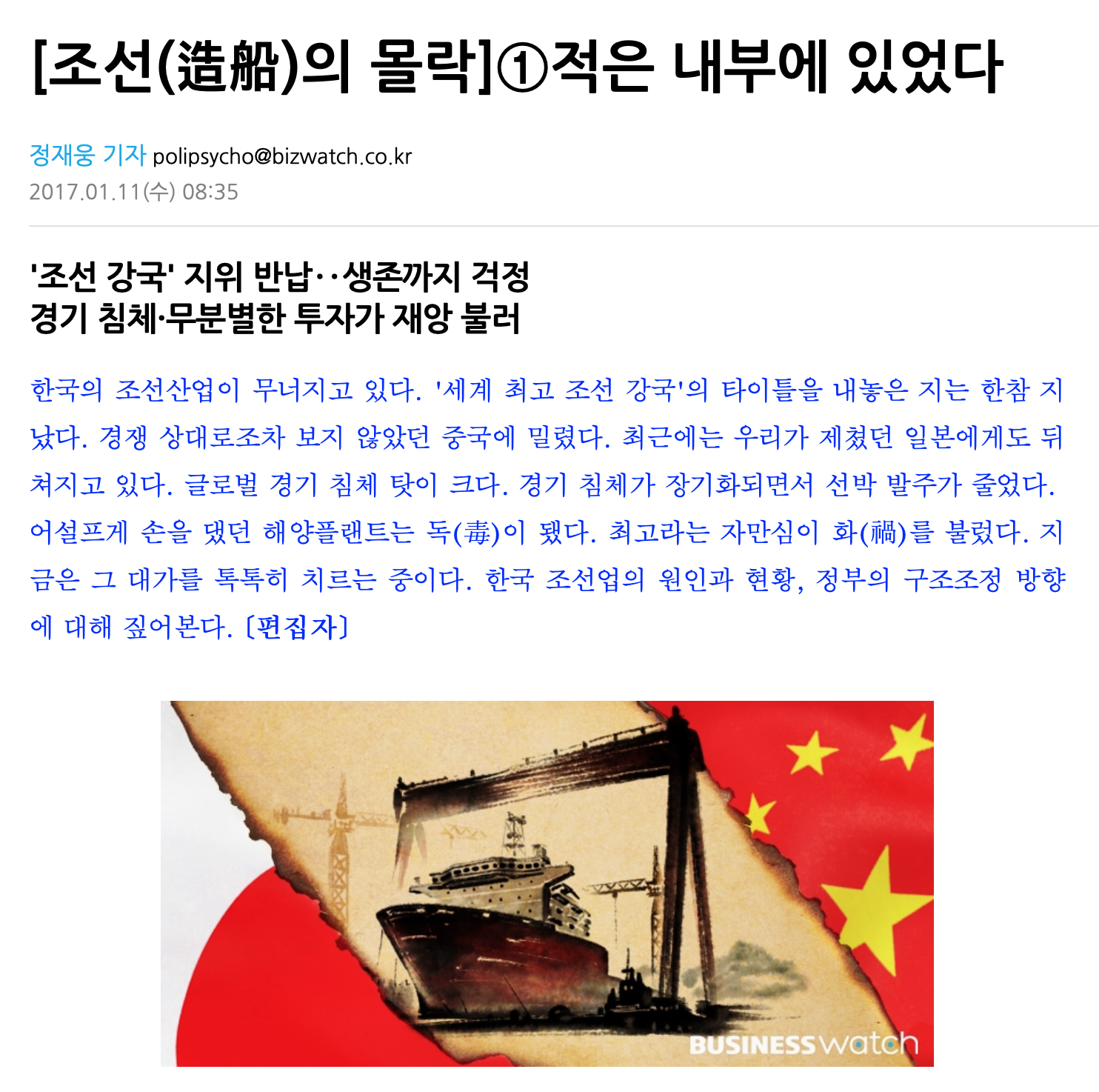 17년이면 중국이 저가형으로 우리가 수주 엄청 뺏길때였고 지금은 배를 줫같이 만드는게 뽀록나서 고부가가치선들은 우리나라가 싹쓸이 하는중
