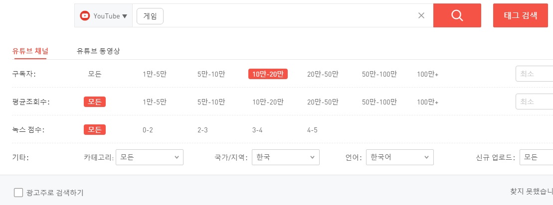 https://kr.noxinfluencer.com/youtube/search/%EA%B2%8C%EC%9E%84?isvideo=0&tagId=1&tagMode=true&followerIndex=3&followerGte=100000&followerLte=200000&country=KR&language=ko