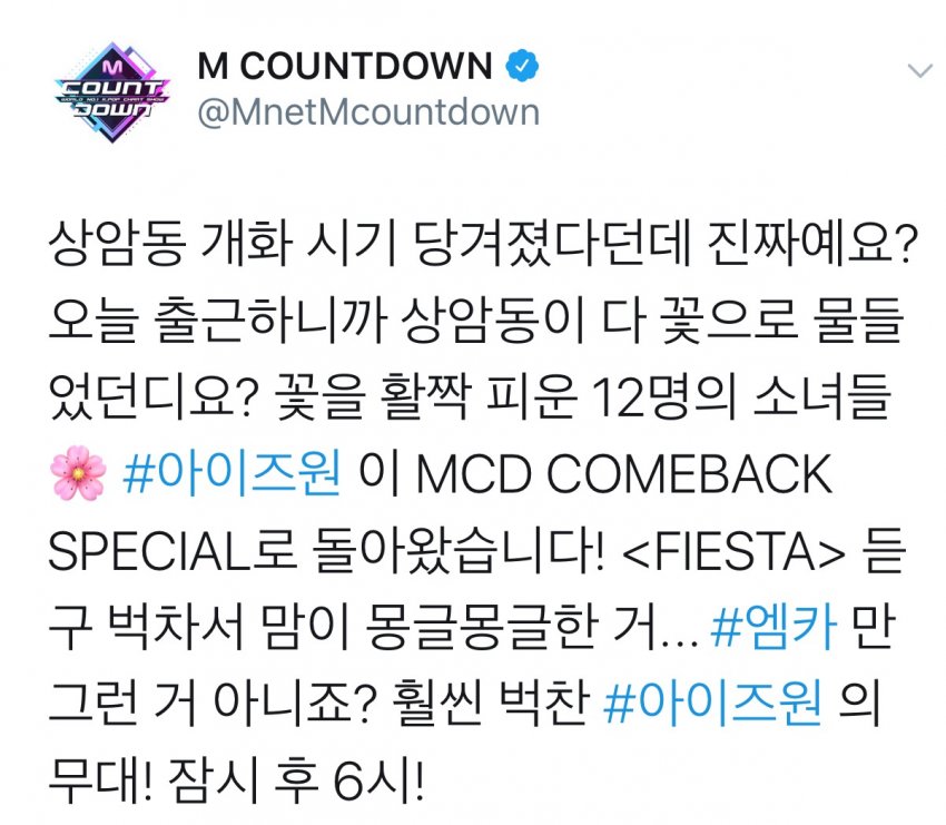 밑에 영상은 3개월전 컴백쇼 영상 찍을 때. 엠카짤은 오늘.