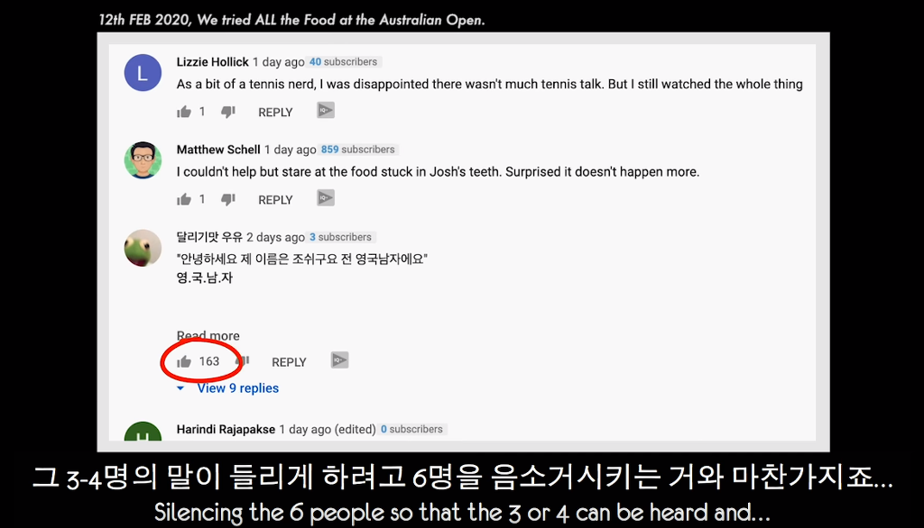 "유튜브 자체적으로 영어댓글 노출을 높이면 영어권 시청자가 늘어나는데 도움이 될지 실험중"