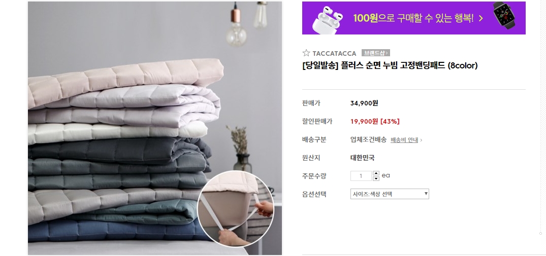4. 순면누빔 고정밴딩패드 다크그레이,차콜 각1EA - 39,800원