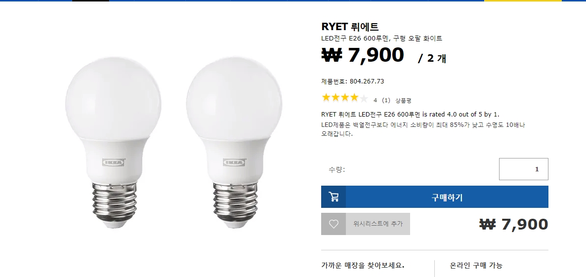 6. 이케아 LED전구 - 7,900원