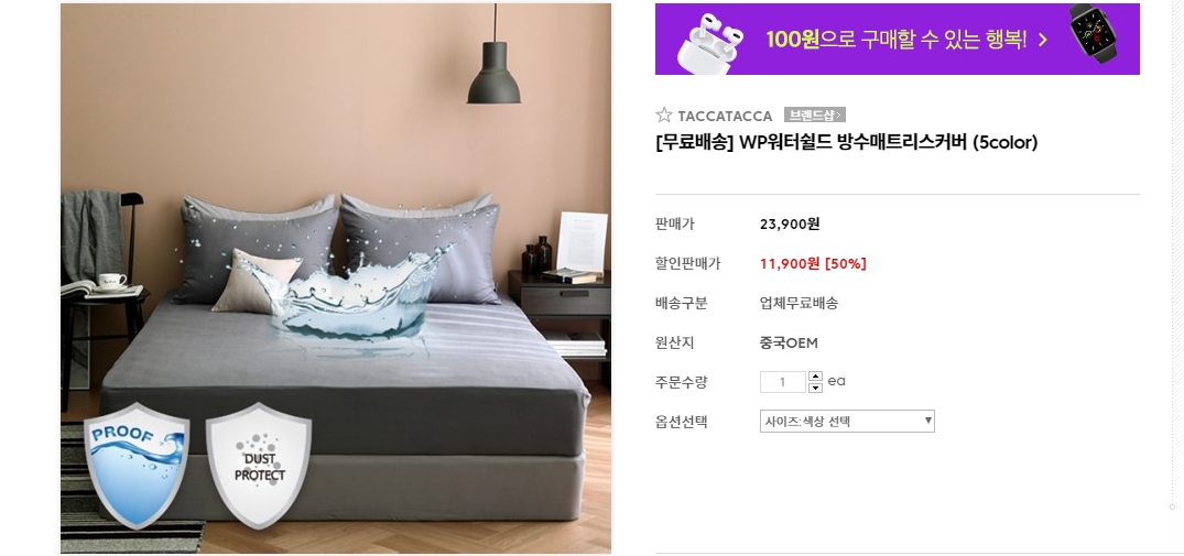 3. 방수매트리스커버 다크그레이 - 11,900원