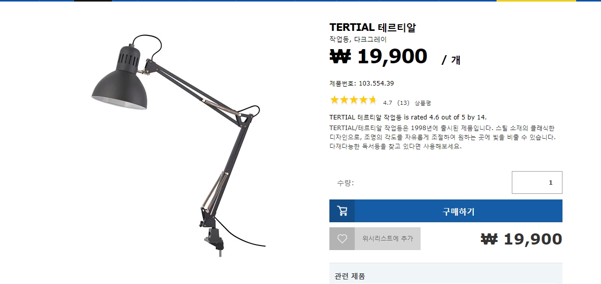 5. 이케아 책상걸이용 스탠드 - 19,900원