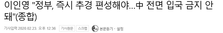 정부부처와 짱개 입국금지에 대한 협의 끝에 안했음 뭐.이런 내용임