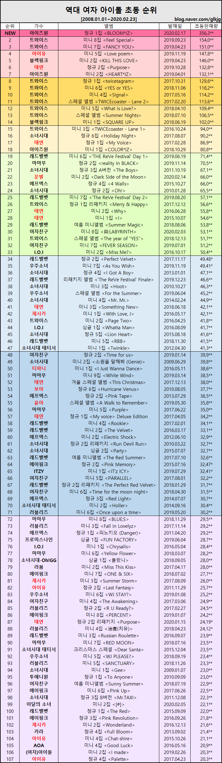 기존 여돌 최고 기록을 2배 이상 넘겼고