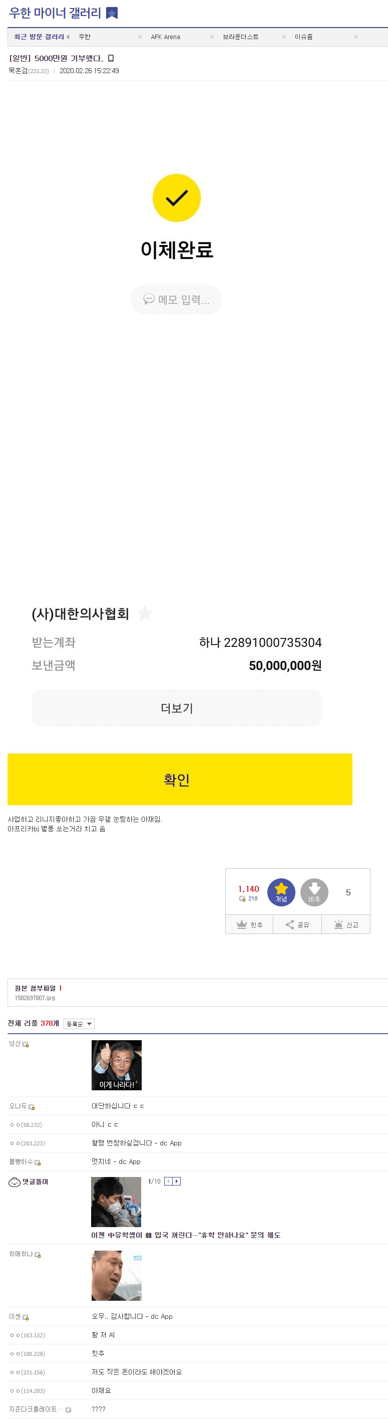 나는 사회적인 위치상 의사양반한테 기부할 그게 안되는데 족간지네