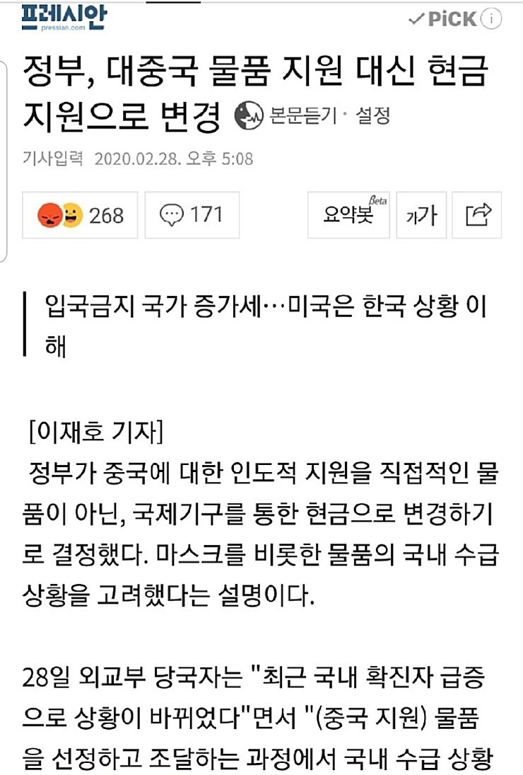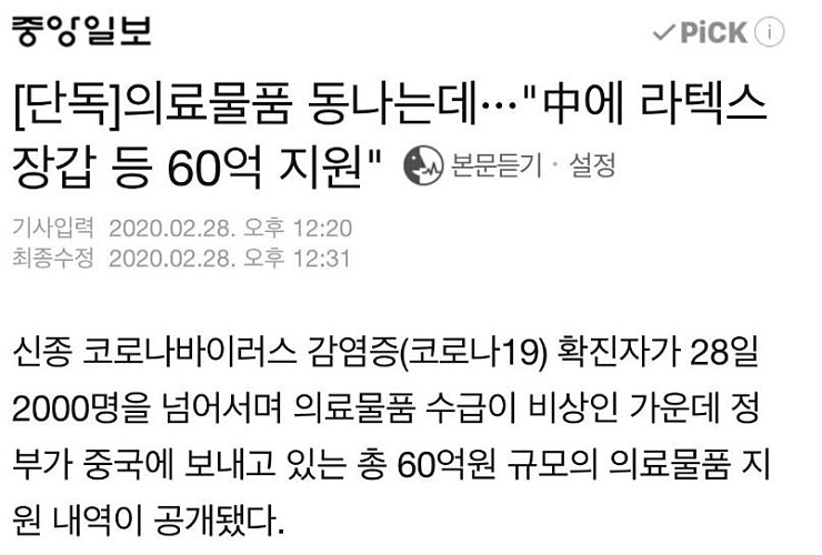 60억에 달하는 의료물품 지원해주고 여론이 안좋으니