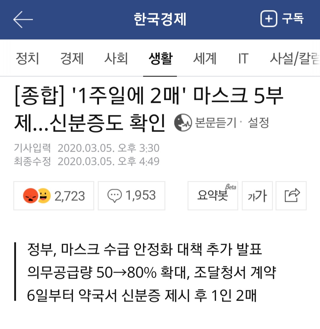 이제 마스크 1인당 일주일에 2장 밖에 못 산다는 말인데ㅋㅋ