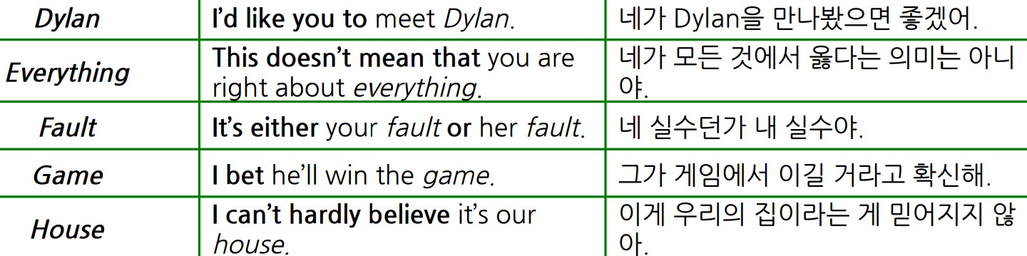 위의 예문에서 영어 가리고 한글만 보여주면서
