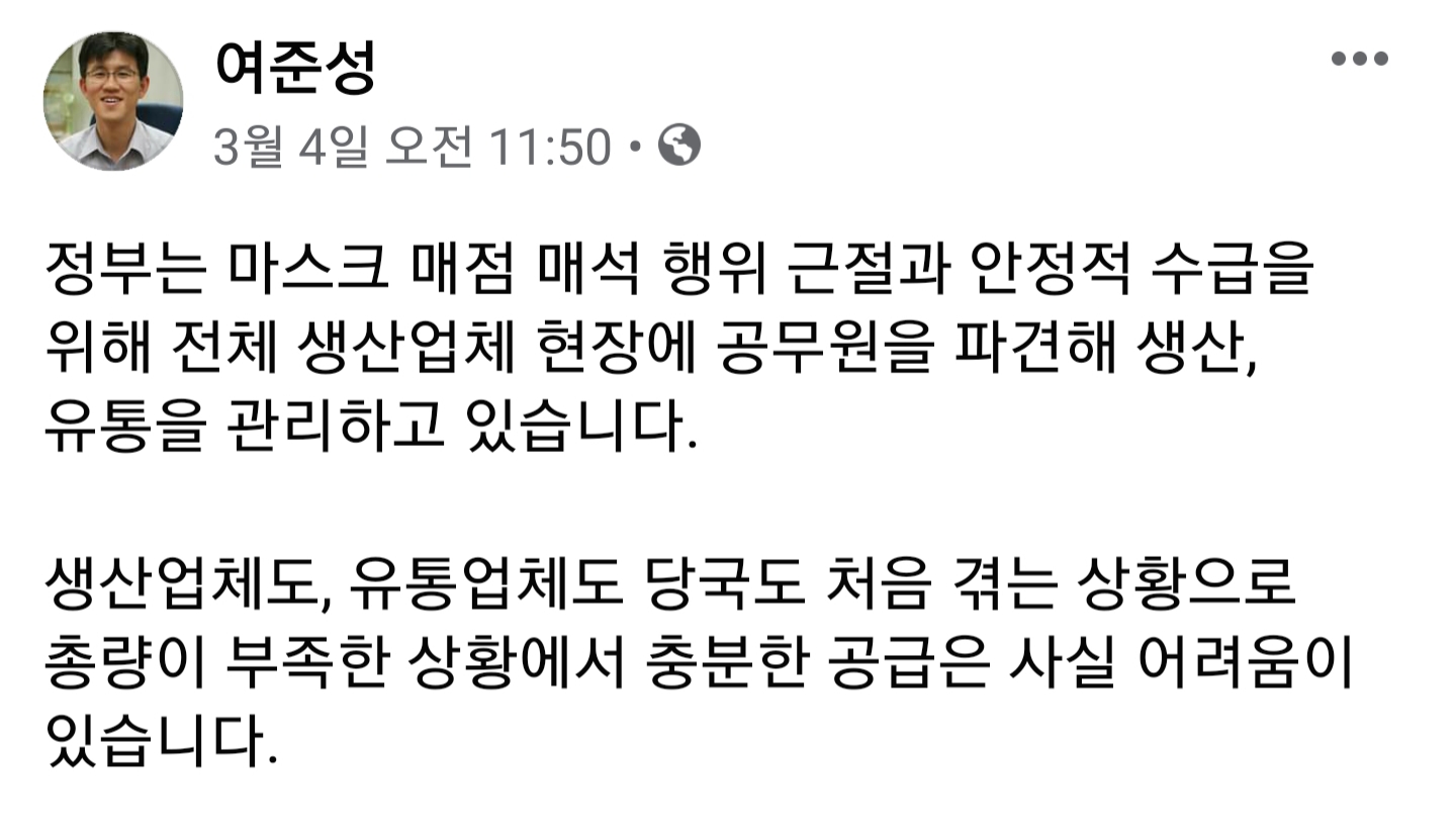 정부정책에 의해 마스크 공급 중단이 아니란 내용