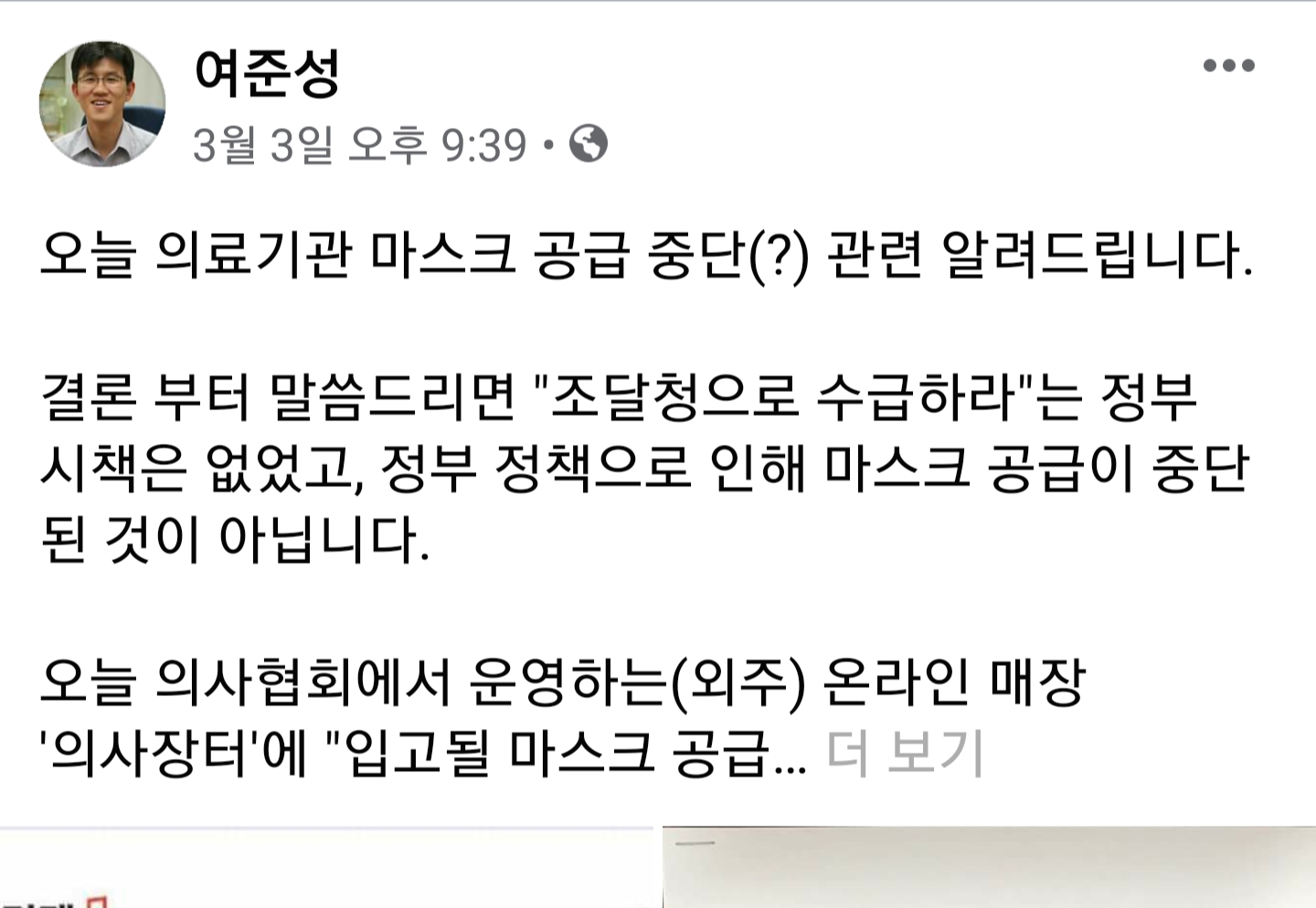 의사장터에 입고될 마스크 공급이 중단된데 대하여