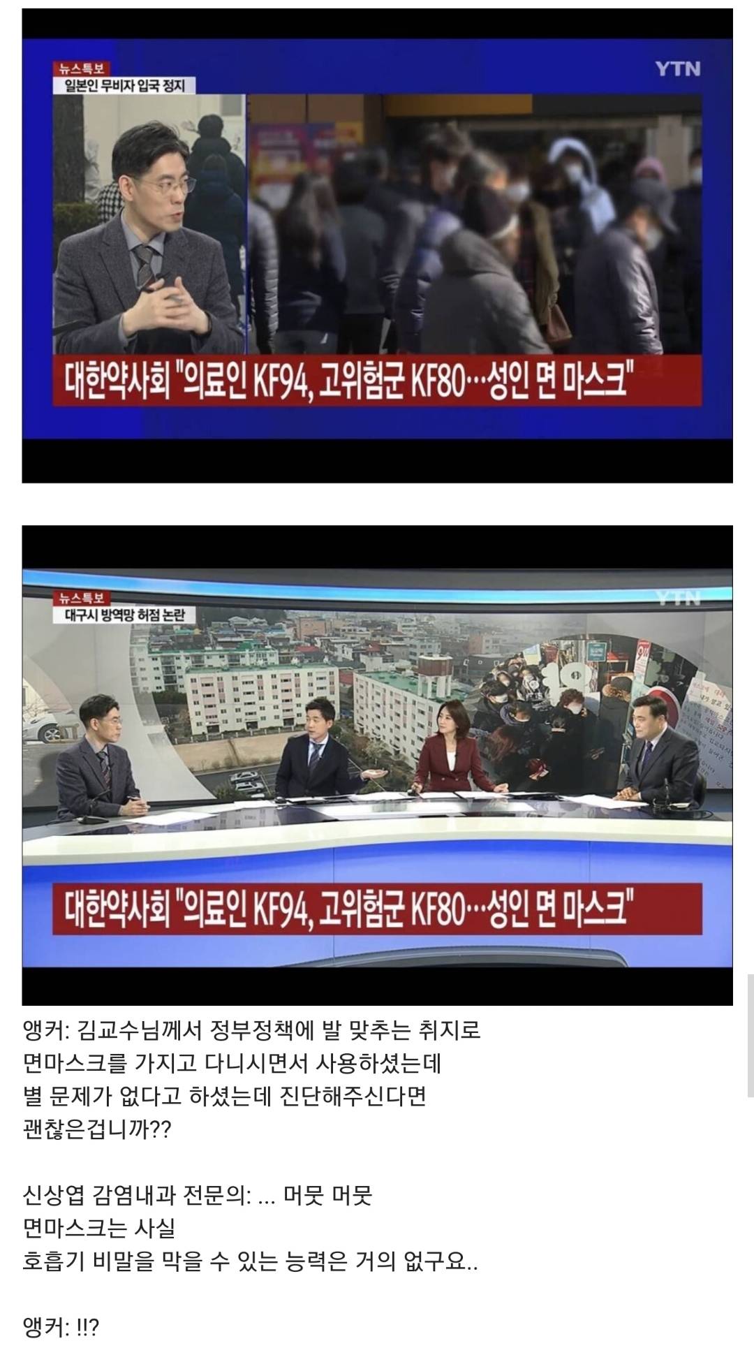 비말이 말이 비말이지 눈에보이는 침도 비말이지만 눈에안보일정도로 작은 침들도 비말이라 큰 덩어리들은 막아도 저런 면마스크 섬유는 구멍이 너무커서 비말을 막을수가 없지 다만 이게 뭐 얼굴 맞대고 말하는게아닌 어느정도 거리두고 생활한다는 전제하에 어느정도 효과가있는지가 관건