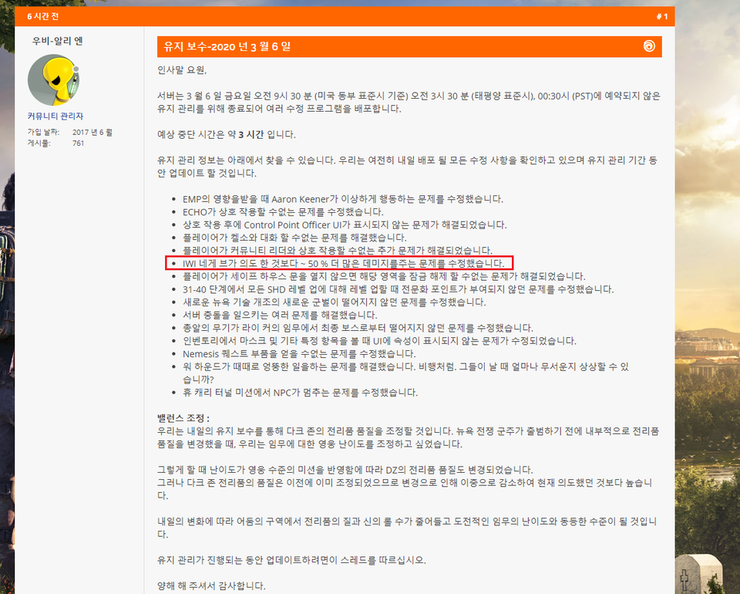 유저가 무기하나 셋팅법을 공유하니깐 그무기 너프ㅋㅋ