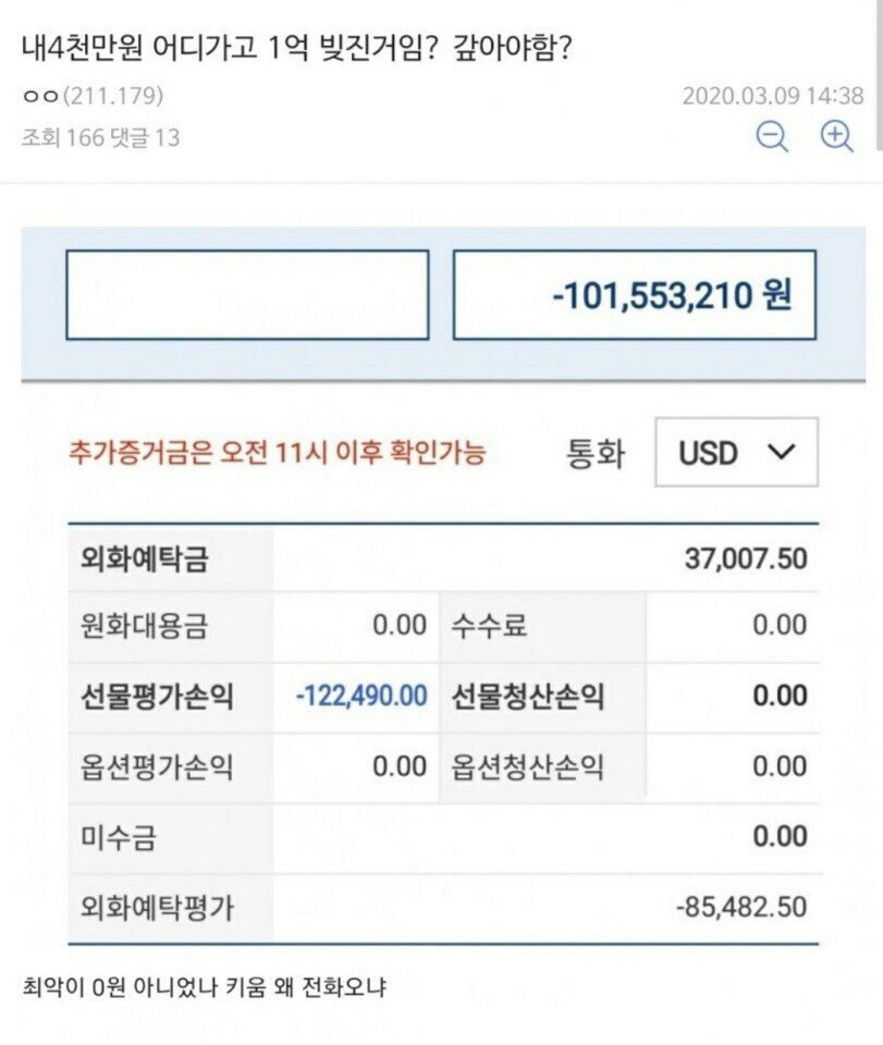 미수거래인가 하면 마이너스가고 3일안에 돈갚아야된다던데