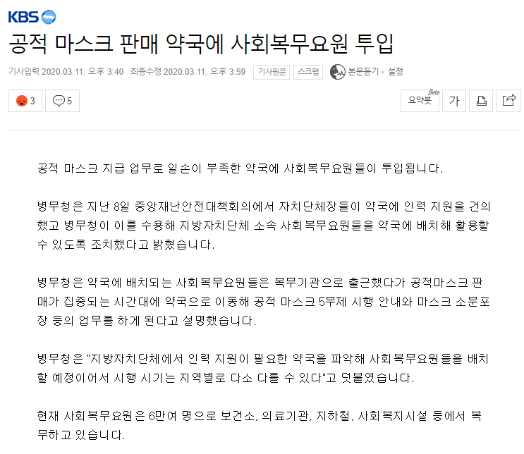 이거 때매 공익을 투입한다는건데.. 솔직히 오면 민폐야. 공익들 또 새로 가르쳐야되고, 애들 밥이라도 사먹이고 해야되는데, 그걸 뭐하러 받음. 전형적으로 일 안해본 티나는 정책인것같다. 퉤