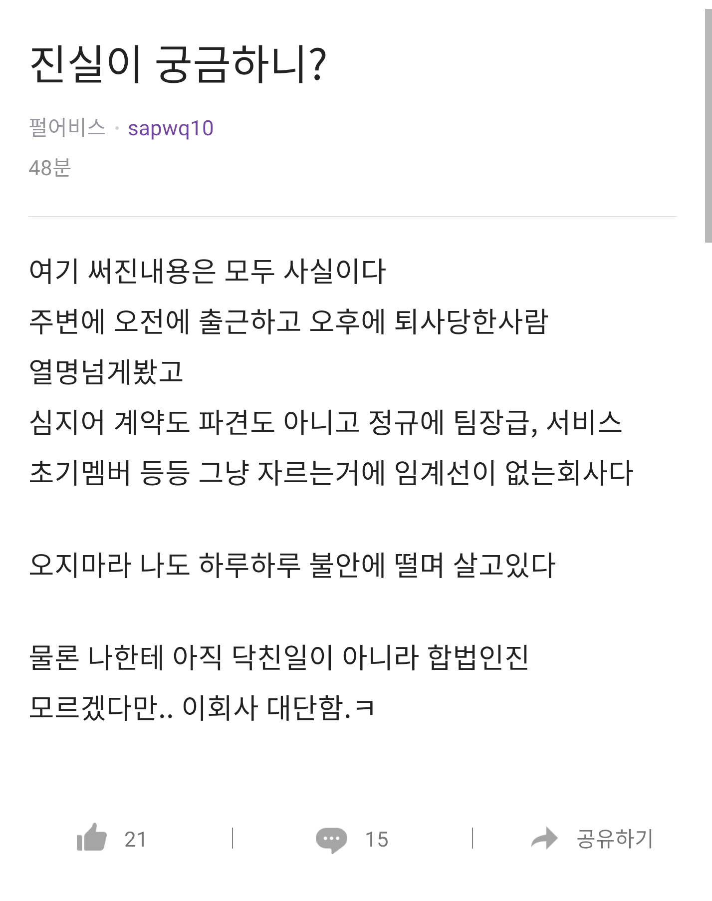 오늘 당일통보로 정규직까지 해고 엄청 시켰다는데