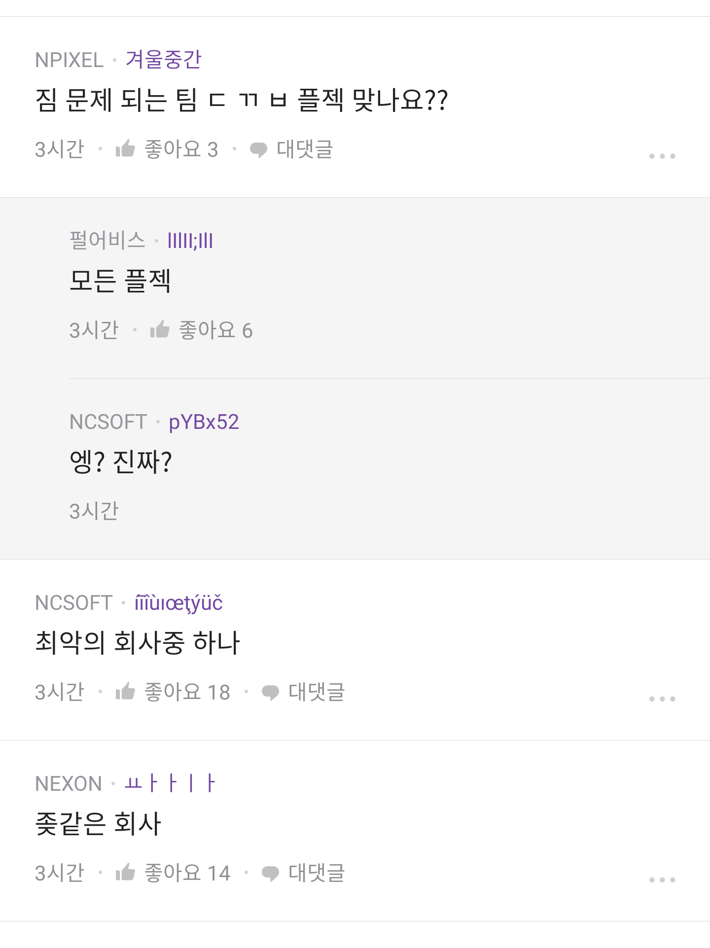 지스타에서 발표한 프로젝트 잠정중단 얘기 나오는데 이건 확실하지 않음