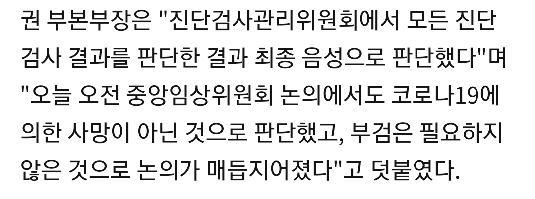 다만 "미결정 반응을 보인 호흡기 세척물, 혈청, 소변 등 잔여검체를 인계받아 재분석했고 서울대병원과 세브란스병원에서 동일검체를 의뢰해 동일 검사를 요청한 결과 모든 검체에서 코로나19가 검출되지 않았다"고 강조했습니다.