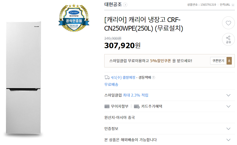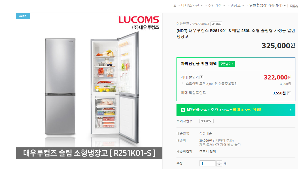 단점:엘지가 아님, 후기에 랜덤으로 성에가 낀다는 불만글이 있음