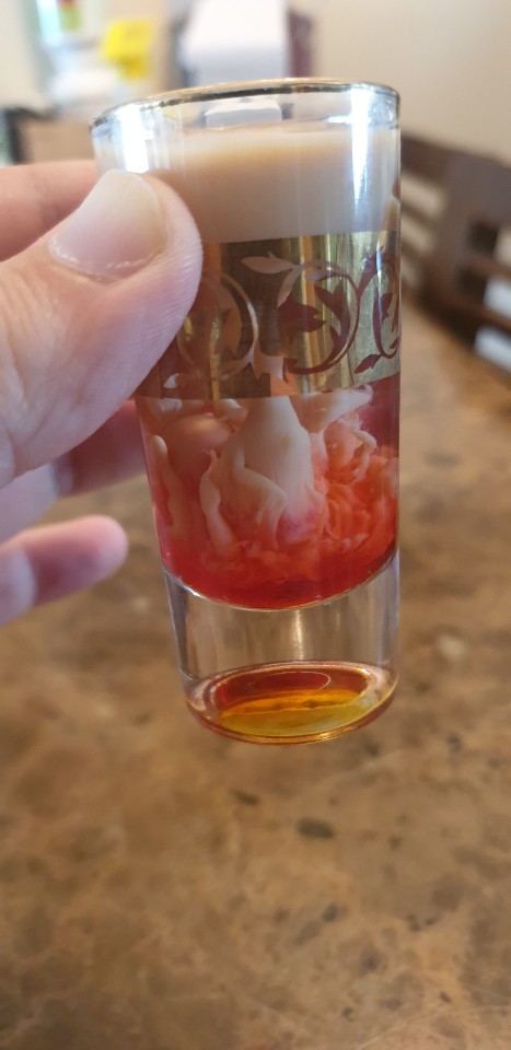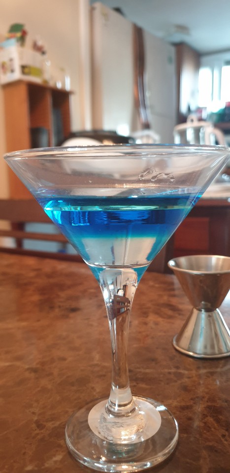그리고 보드카 위에 큐라소를 띄우는 게 아니라 반대였고.. 핵똥멍청..