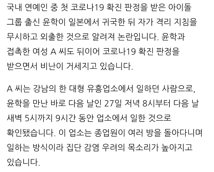 연예인 확진자랑 접촉자였던것임