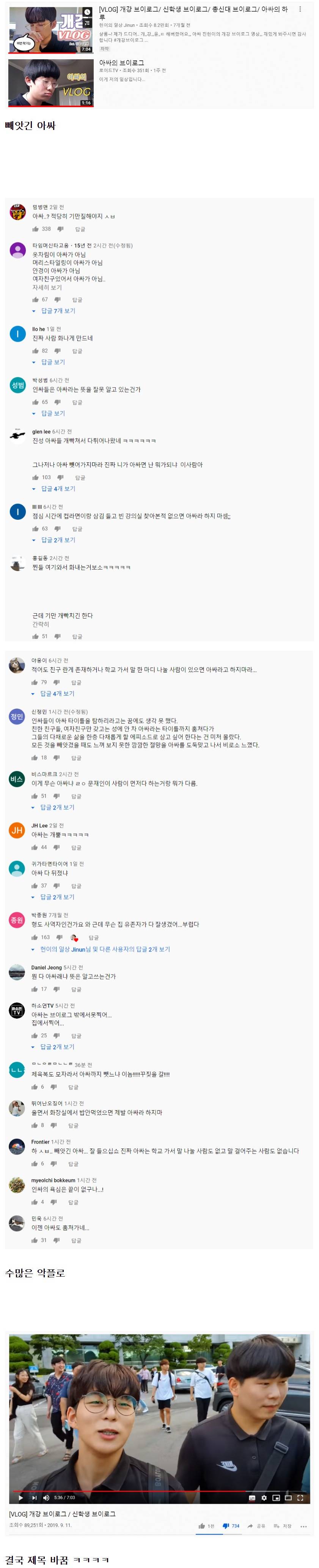 향월이 유툽댓글도 다네