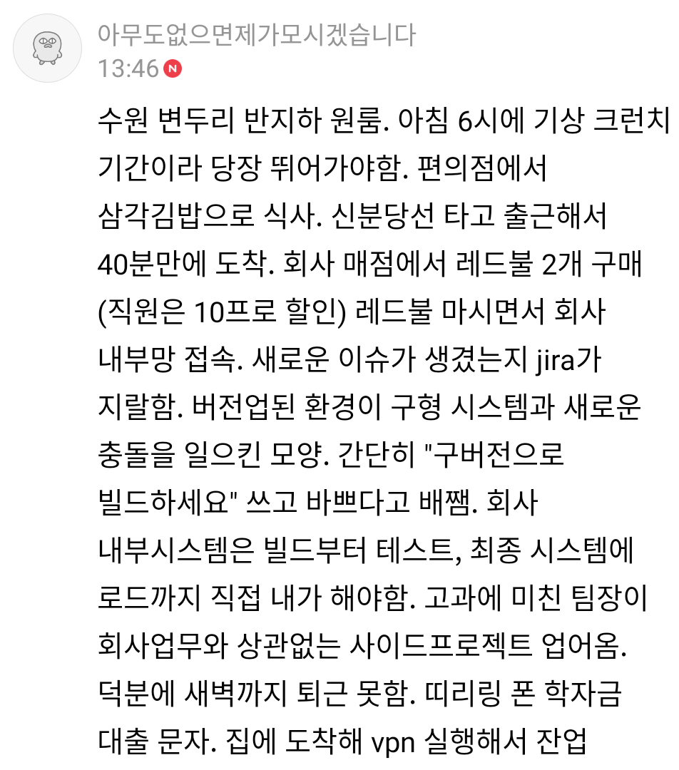 (잠에서 깨어나며) 도르륵.. 어 이게 뭐지? 눈물인가? 내가 울고있는건가? 뭔가 좋은 꿈을 꾼것같았는데..