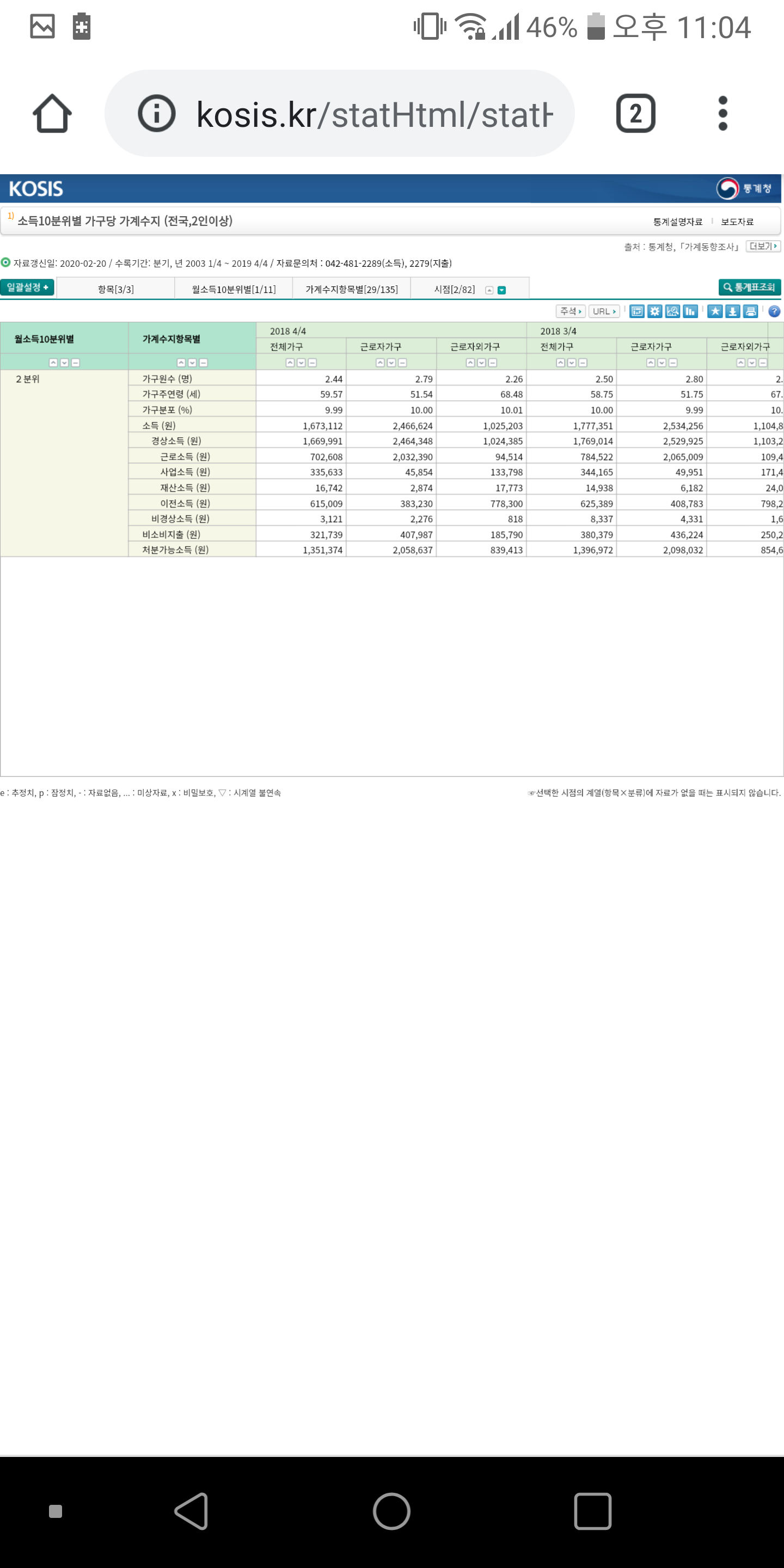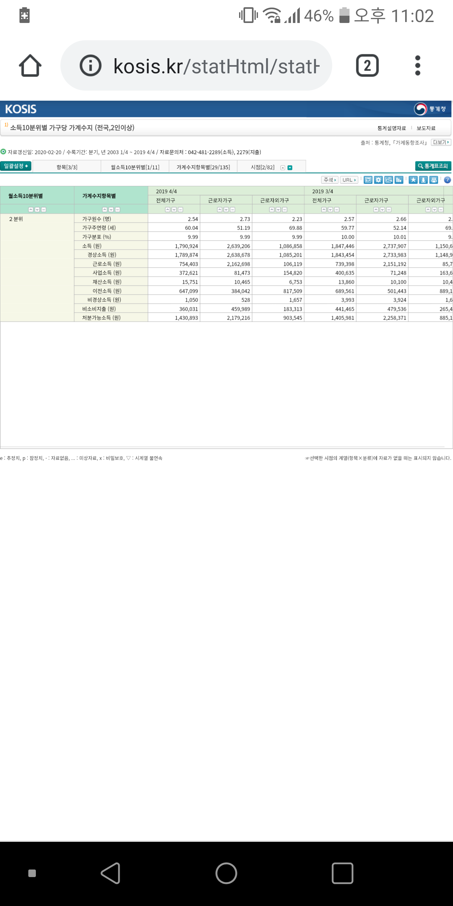 바로 저 링크를 다시한번 보자. 2분위 소득 2015년부터 쭉 써본다.