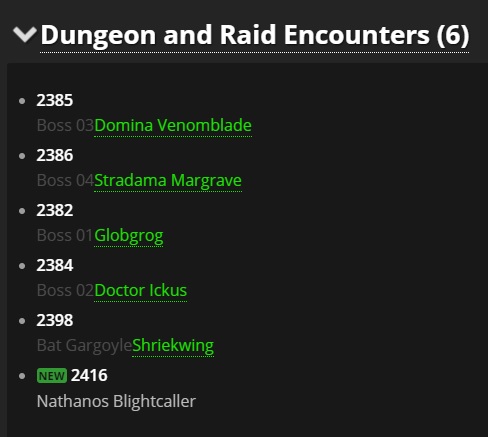 이 중 나타노스는 정예로 설정되어 있으며, 새로운 던전이나 레이드에서 등장할 예정(아직 어디인지는 설정되어 있지 않음)입니다.