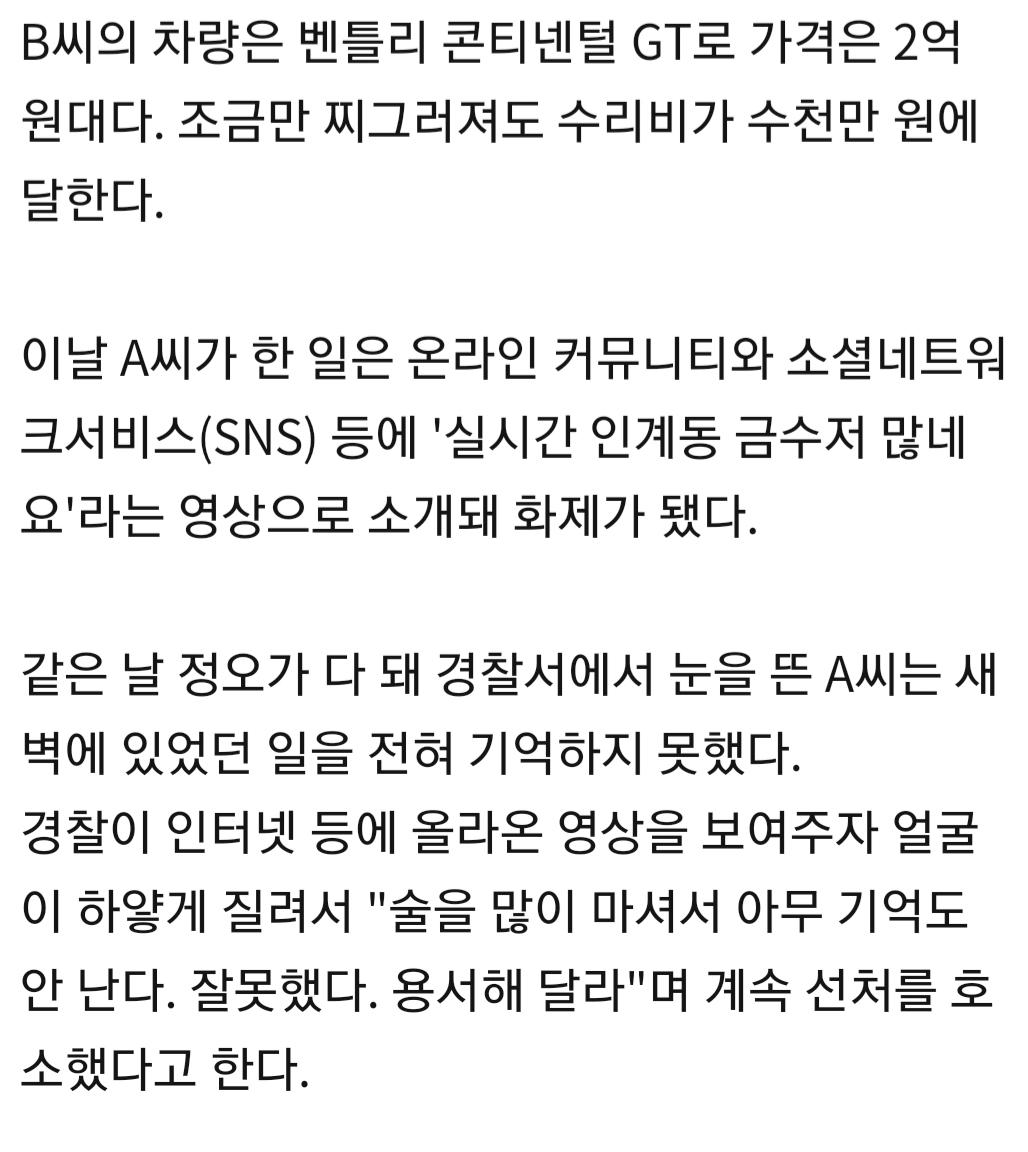 발로찬놈 뭐 술에 취해 기억이 안난다 선처해달라 뻔한 레파토리 예상해봅니다