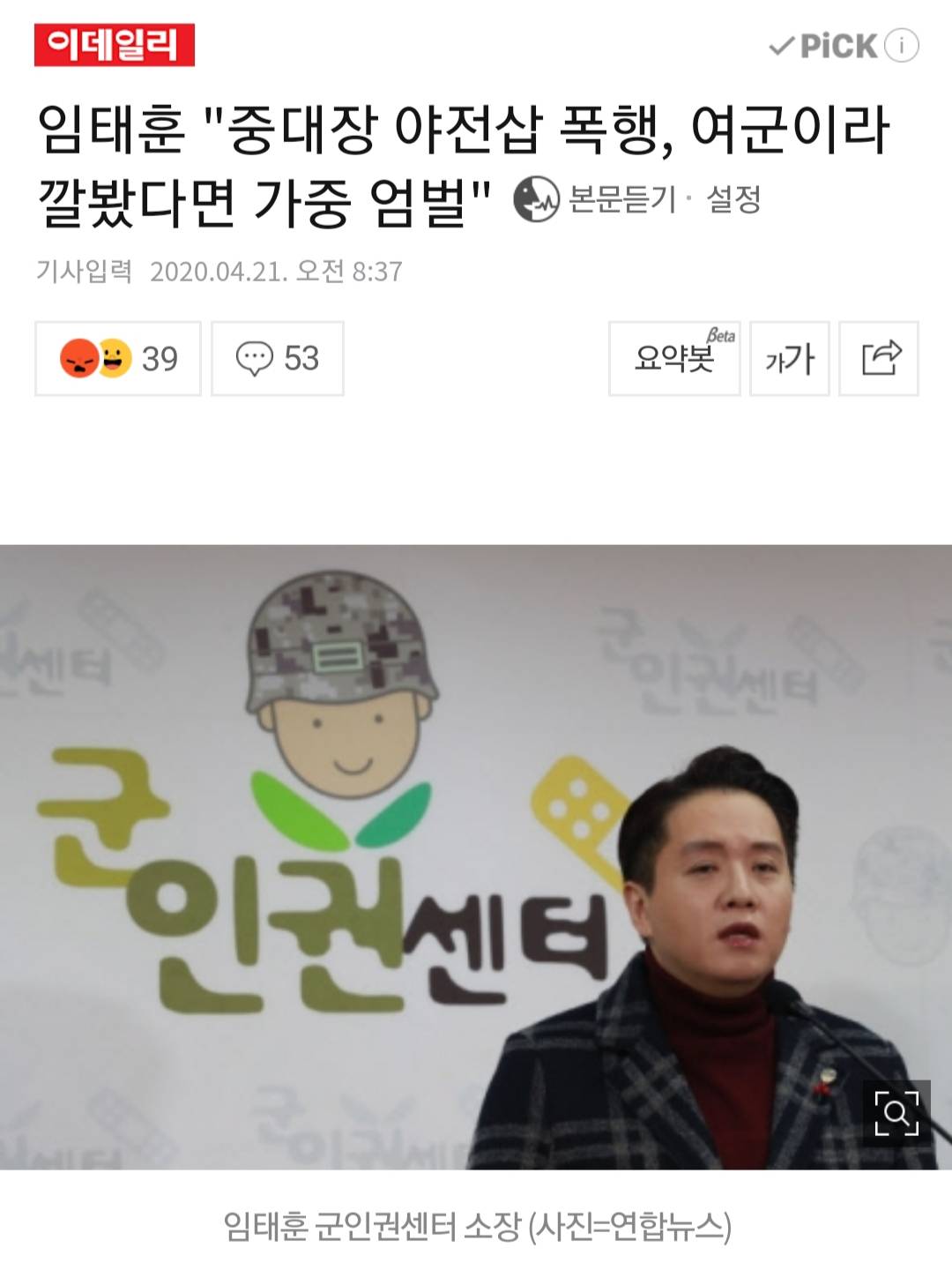머리를 삽으로 팬건 이유가 뭐든 크게 잘못한거지만 대위와 의무병인 상병중에 누가 더 약자라고 보길레 군인권센터가 상병을 조지려하냐