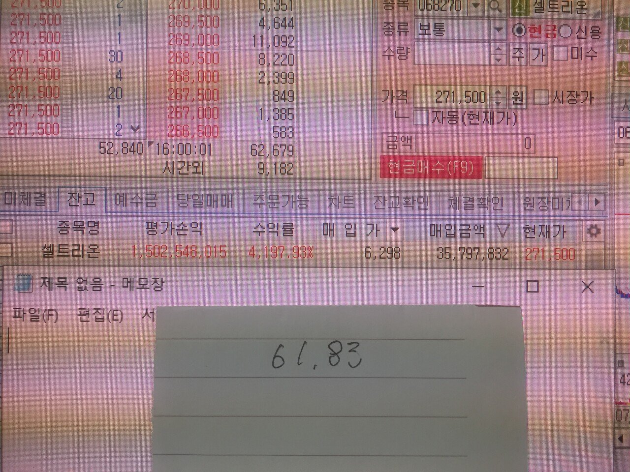 저게 6300원이면 바이오주 제약주 개잡주 시절인데 저때 셀트리온에 3500만원을 태울 생각을 한건 사실 미쳤다고밖에는-_-;
