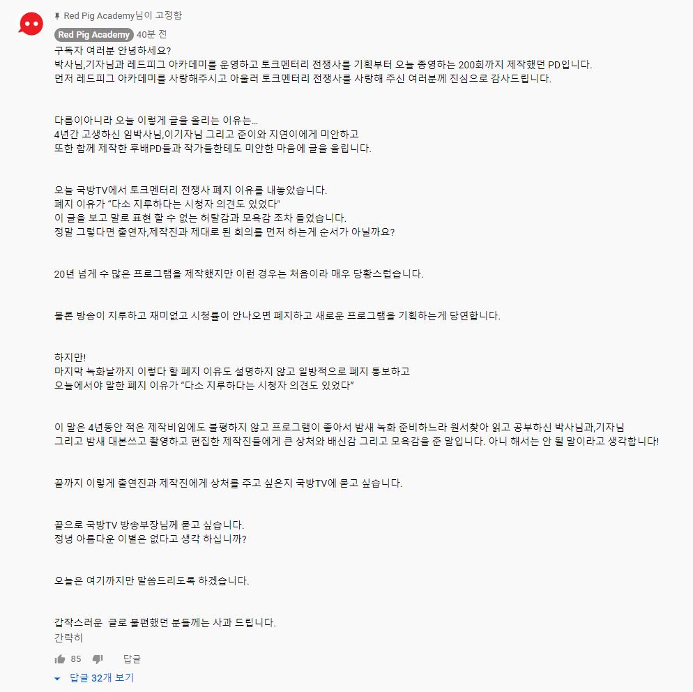 아 진짜 존나 빡치네 제작진도 저런 반응이면 외압이지 시발