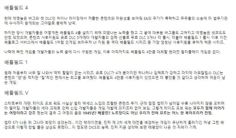 역대 배필시리즈 중 몇개 평가인데 비교해봐라